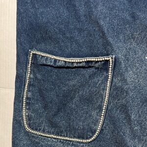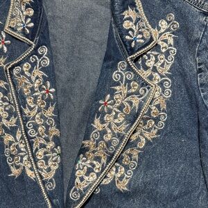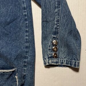 Western Silver Embroidered Denim Blazer Jacket Rhinestones Silver Buttons Size L