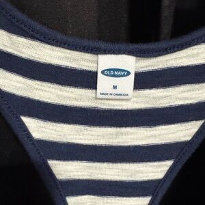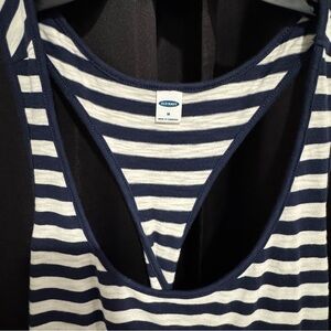 Brand new with tags! This navy and white striped tank dress from Old Navy is a warm-weather essential. Features a relaxed, easy fit with a scoop neckline and sporty racerback style. Super comfy and versatile—perfect for beach days, errands, or layering with a jacket.