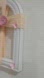 Elegant wall decor featuring a white frame with cream yarn and pink floral accents. Perfect for adding a touch of charm to any room.