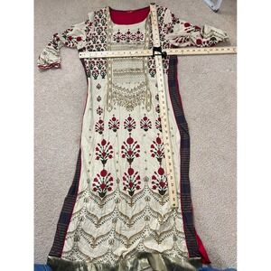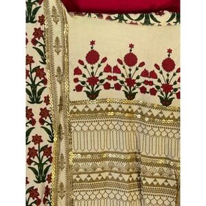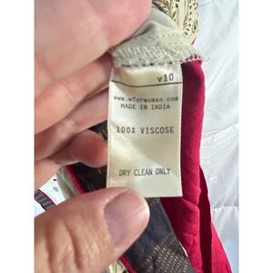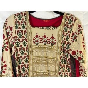 W for Woman Kurti Tunic Top Beige Red Floral Print Sequins Made in India Size 10