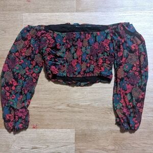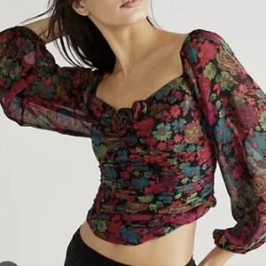 brand new free people oh la la blouse in a black floral combo print, size small. blouses in perfect condition, no damage, defects, or flaws of any kind. from a smoke-free home.