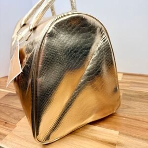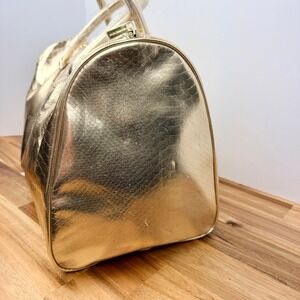 Michael Kors Gold Metallic Snakeskin Embossed Weekender Duffel Travel Bag NWT