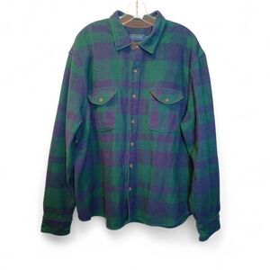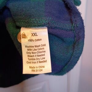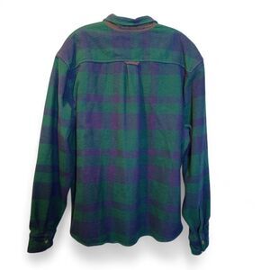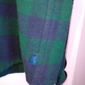 Biltmore Heavyweight Blue and green Long Sleeve Plaid Flannel Shacket in XXL. Button Up, Pockets, Lined. Made from 100% Brushed Cotton. Suede Trims