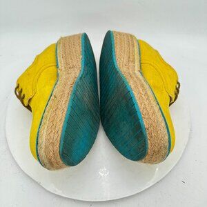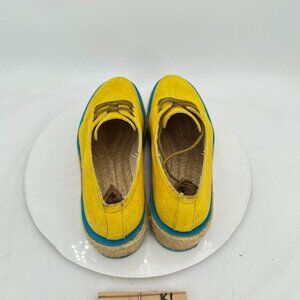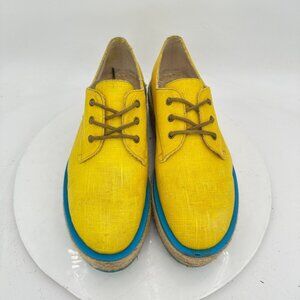 John Fluevog Martin Women Size 7 Yellow Waxed Cotton Platform Espadrilles Shoes