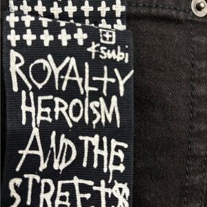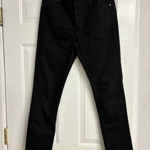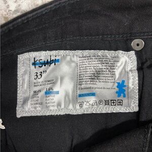 Sleek black skinny jeans by Ksubi. Features unique back pocket design. Perfect for a modern look.