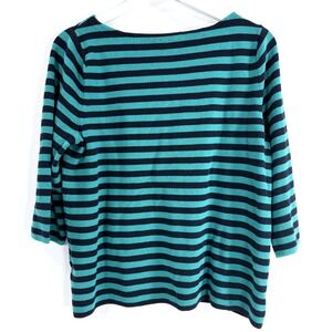 J.Jill Teal Navy Blue Striped Boatneck 3/4 Sleeve Knit Top Large Petite LP