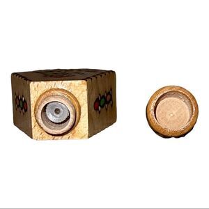 Bulgarian Small Wood Perfume Bottle Holder Hand Painted Folk Art EUC