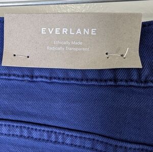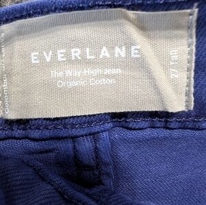 NWT Everlane jeans, Way-High straight leg, Lapis blue denim, tall women’s jeans, high waisted, size 27 tall, new with tags, minimalist style, bright blue, premium denim, organic cotton, stretch denim.