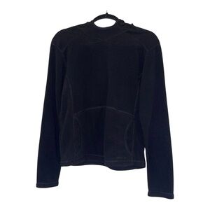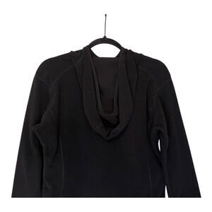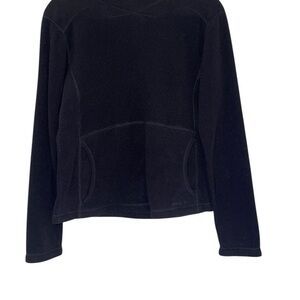 Cozy fleece with iconic logo. Perfect for outdoor adventures.Women’s size medium. Pocket in frond. Fleece does have a hood. Excellent condition.