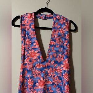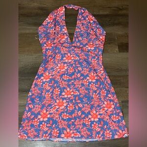 Belle Badgley Mischka Delilah Halter Dress Floral Coral and Blue Size 12