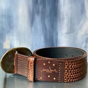 NWOT ALEXIS FASOLI Barcelona Brown Leather Belt 32"- 37"