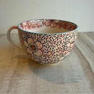 Beautiful handcrafted ceramic oversized mug or soup bowl. Features a blue and brown glaze. Made by Massachusetts artist Iris Minc.