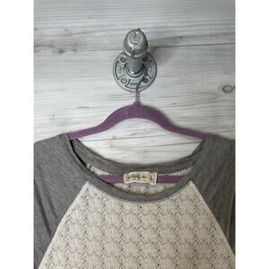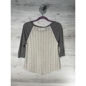Abercrombie & Fitch Shirt Womens Small Gray White Raglan 3/4 Sleeve Lace Knit