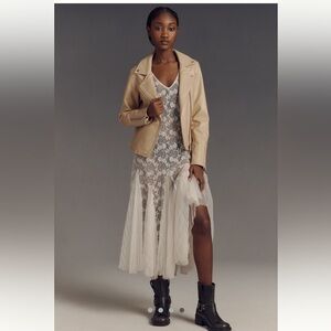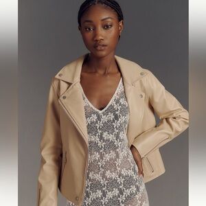Anthropologie • Saige Faux Leather Moto Jacket Tan Sand Beige NWT
