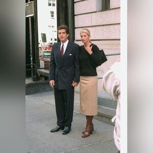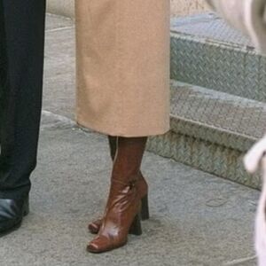 These are a pair of very hard to find vintage 90s Full-grain Leather Nine West Camel Boots that I bought in the 90s. They were designed exactly matching the ones worn by Carolyn Bessette Kennedy in these photos. I don't remember if they came out before she wore hers or after, it was the style we all wore then. I haven't seen anything on the market that is exactly like what we had back then, either cut or quality-wise so if you're after 90s style, this is the real deal.