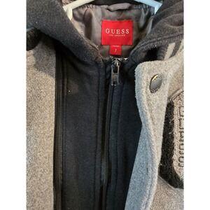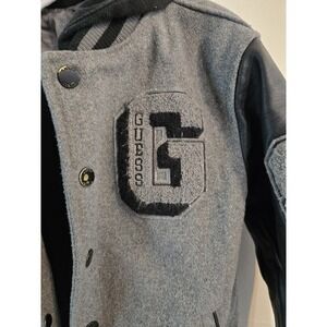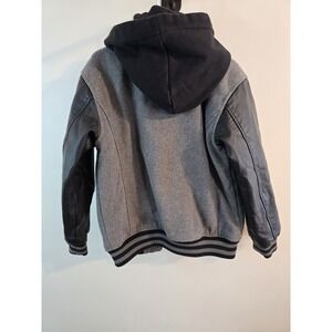 GUESS Boys Youth Varsity Wool Blend Hooded Jacket Full Zip Black & Gray Size 7