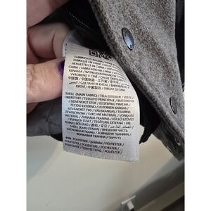 In good used condition. Please see pictures. Removable zipper/hood, some wear on snaps as shown.