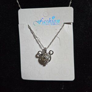 MIckey Mouse Pearl Caged Pendant on Silver Toned Chain NWT