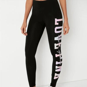 Victoria's Secret PINK Active High Waisted Athletic Yoga Leggings with colorful LOVE PINK on the side of the left leg, S, in excellent pre-loved condition
