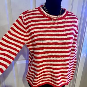 Chic knit sweater with red and white stripes. Ideal for everyday style.