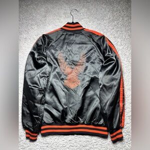 Vintage Harley Davidson Jacket - Satin Bomber - Black - Orange Stripes - Eagle - 80s - 90s - Union Made in USA - Motorcycle Riding Gear - Moto - Style 661611 - Outerwear - Streetwear -
