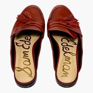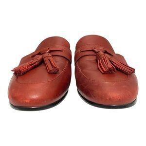 Stylish red loafers with tassel detail. Comfortable slip-on design. Perfect for casual wear.