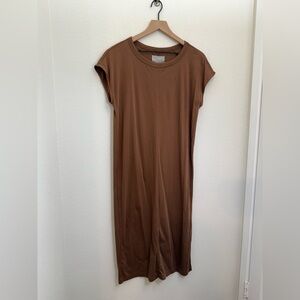 Everlane The Luxe Cotton Side Slit Tee Dress Brown Medium