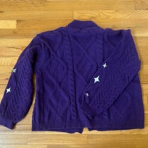 For the swifties- Elegant deep purple cardigan with charming star details. Perfect for a stylish touch.