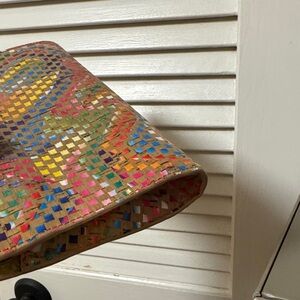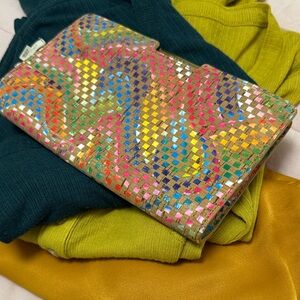 Milly clutch purse in a gorgeous woven multicolor print. Fabulous condition and all set for Spring!