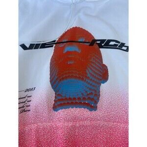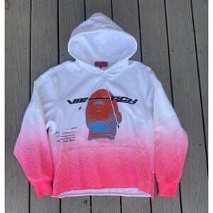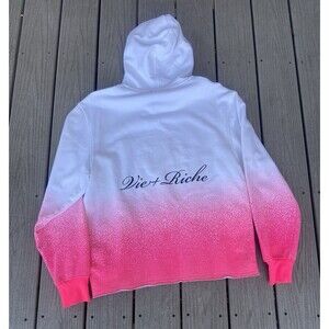 Bold and #rare #VIE+RICHE mens hoodie in a striking white-to-pink gradient #ombré fade. Features a #3D-style face graphic on the front, brand logo text on back, and soft 100% cotton construction.
