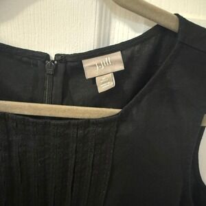 J. Jill Women M Petite Black Linen Pin Tuck Pleated Sleeveless Knee Length Dress