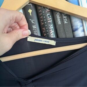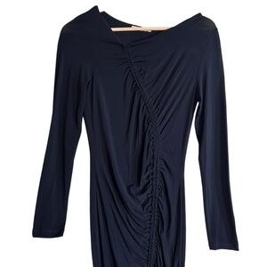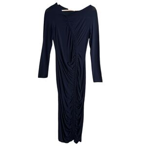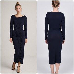 Paloma Wool Gobi Navy Ruched Midi Dress Sz Small Long Sleeve Fitted
