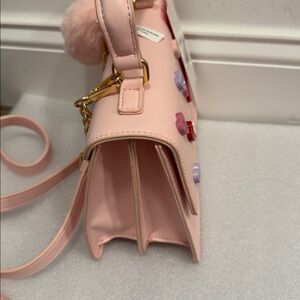This is a new with tags Betsey Johnson heart message mini crossbody bag. It has a fuzzy heart charm and measures 8” x 6” x 3.5”.