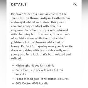Elegant and cozy, this cream button-up sweater is perfect for any occasion. Its soft texture and stylish design make it a must-have in your wardrobe. Brand new, never worn.