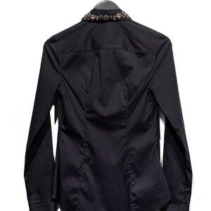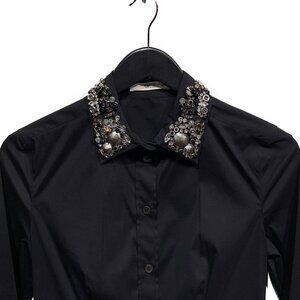 Prada Black Cotton Shirt with Crystals Embellished Collar