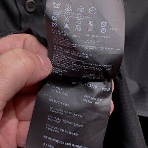 Prada Black Cotton Shirt with Crystals Embellished Collar. Adjusted fit. Cotton blend. Stretch fabric. Collared neckline with multi sizes and multi shapes black and clear crystals. Long sleeves. Black button front closure. Made in Italy.