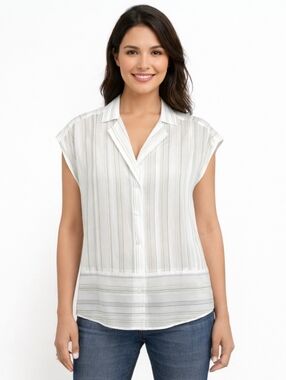Add effortless style to your wardrobe with this Roz & Ali short sleeve blouse. Featuring a vibrant red, navy, and white paisley-inspired geometric print, this top is designed with front pleats that create a flattering fit-and-flare silhouette. The scoop neckline and lightweight, flowy fabric make it perfect for all-day comfort.