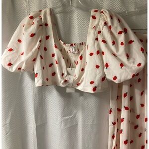 Elevate your wardrobe with this chic white and red floral skirt set. Perfect for any occasion, this set combines style and comfort effortlessly.