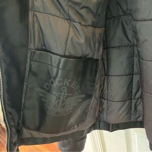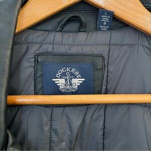 Cozy Dockers Bomber Jacket Faux Leather Brown Quilted Lining Size L