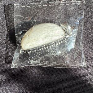 Cream Stone Pendant with Silver Accents