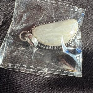 Chic pendant featuring a cream stone with silver detailing. Ideal for adding elegance to any outfit. Key Details