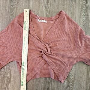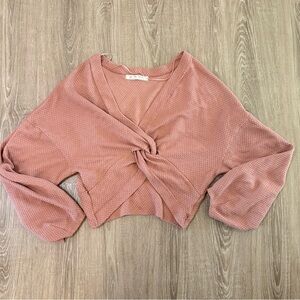 Wear the twist in the front for a trendy wrap look, or flip it and wear the twist in the back for a more classic silhouette. Two looks in one cozy top.