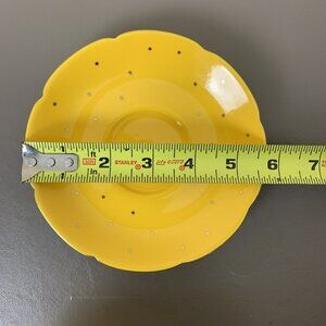 Anthropologie Blue Bird Yellow Teacup Saucer Set of 2 Cups Gold Polka Dots