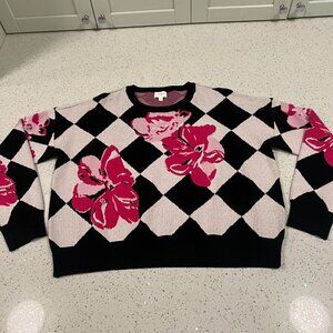 CYRUS Floral Knit Sweater Women's Size Large Pink Black White Pattern