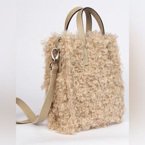 This is a Kassiopea Ultima Crossbody Bag, a versatile Italian-made handbag featuring a cozy, nubby texture and a removable strap that allows it to be used as a tote