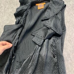 Tory Burch Black Ruffled Sleeveless Tank Dressy Blouse 100% SILK - Size 2