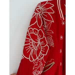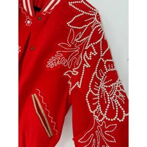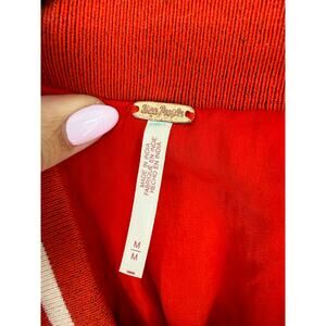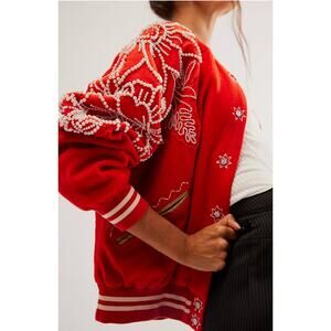 Free People Pretty In Pearls Bomber Jacket Varsity Red Medium M