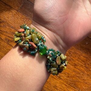 Unakite Jasper Natural Stone Green Bracelet- Boho Chunky