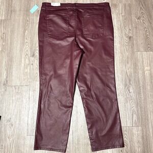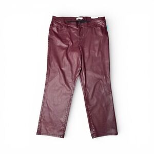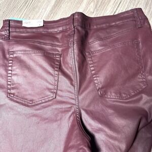 New with tags, Edgely Womens Burgundy Retro Slim Straight High Rise Faux Leather Jeans 22W.