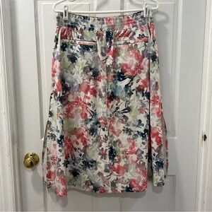 Athleta Jupe Savannah watercolor floral midi skirt size large. It has front and back pockets, an elastic waist and slits on both sides. Beautiful pattern that’s perfect for summer, vacations, beach or casual wear.